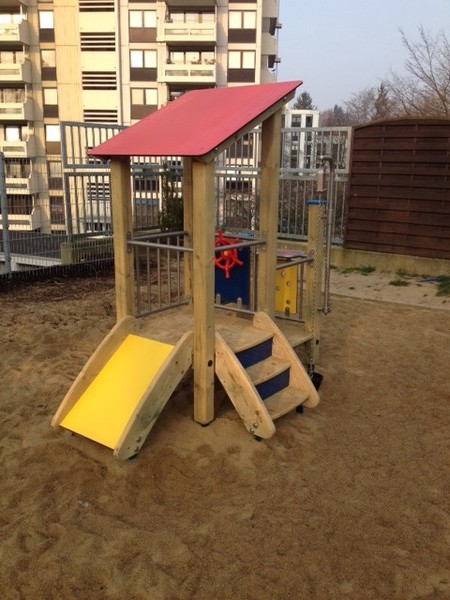 Das neue Spielgerät ist auch schon für die kleineren Kinder geeignet und wird sehr gerne von allen bespielt.