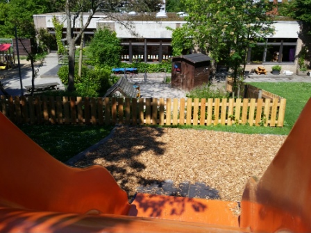 Heute haben wir mal wieder ein paar neue Fotos von der KiTa gemacht, da ja das neue Klettergerüst steht und der Zaun hinter dem Sandkasten auch neu gemacht wurde.