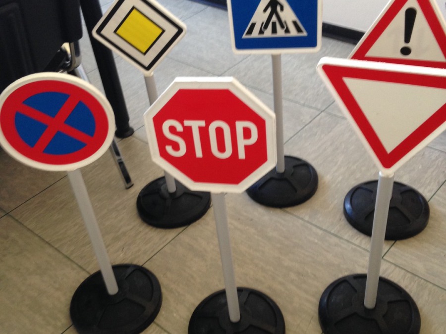 Dank des Einsatzes eines Großvaters konnte der Förderverein heute dem Kindergarten Verkehrsschilder übergeben. Diese können super spielerisch bei der Verkehrserziehung zum Einsatz gebracht werden.